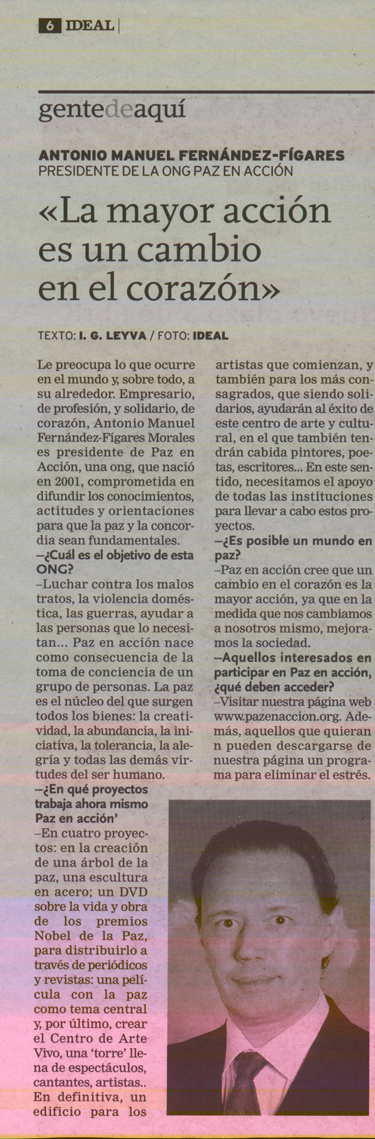 Artículo en Ideal de Granada del director de Paz en Acción, 2016.